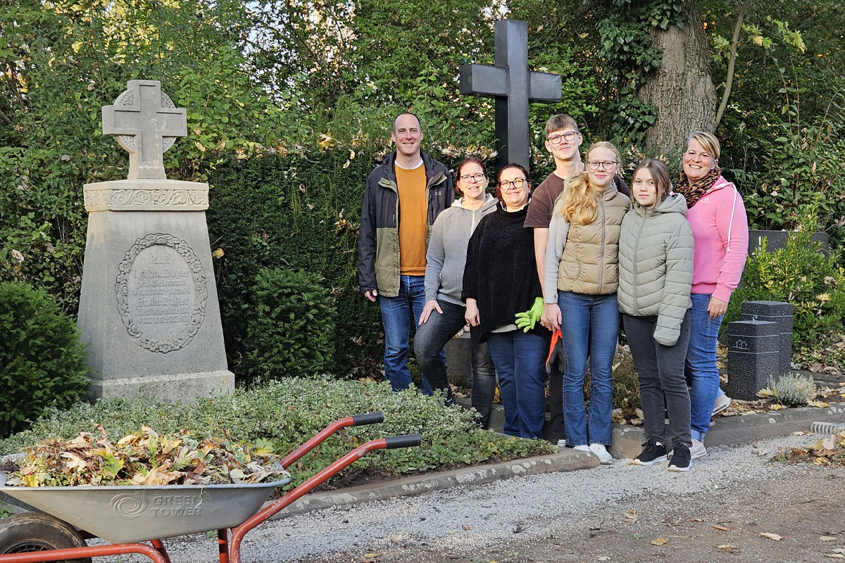 Gemeinsam die Grabstätte von Bruno Wagler vor Allerheiligen in Stand gesetzt.