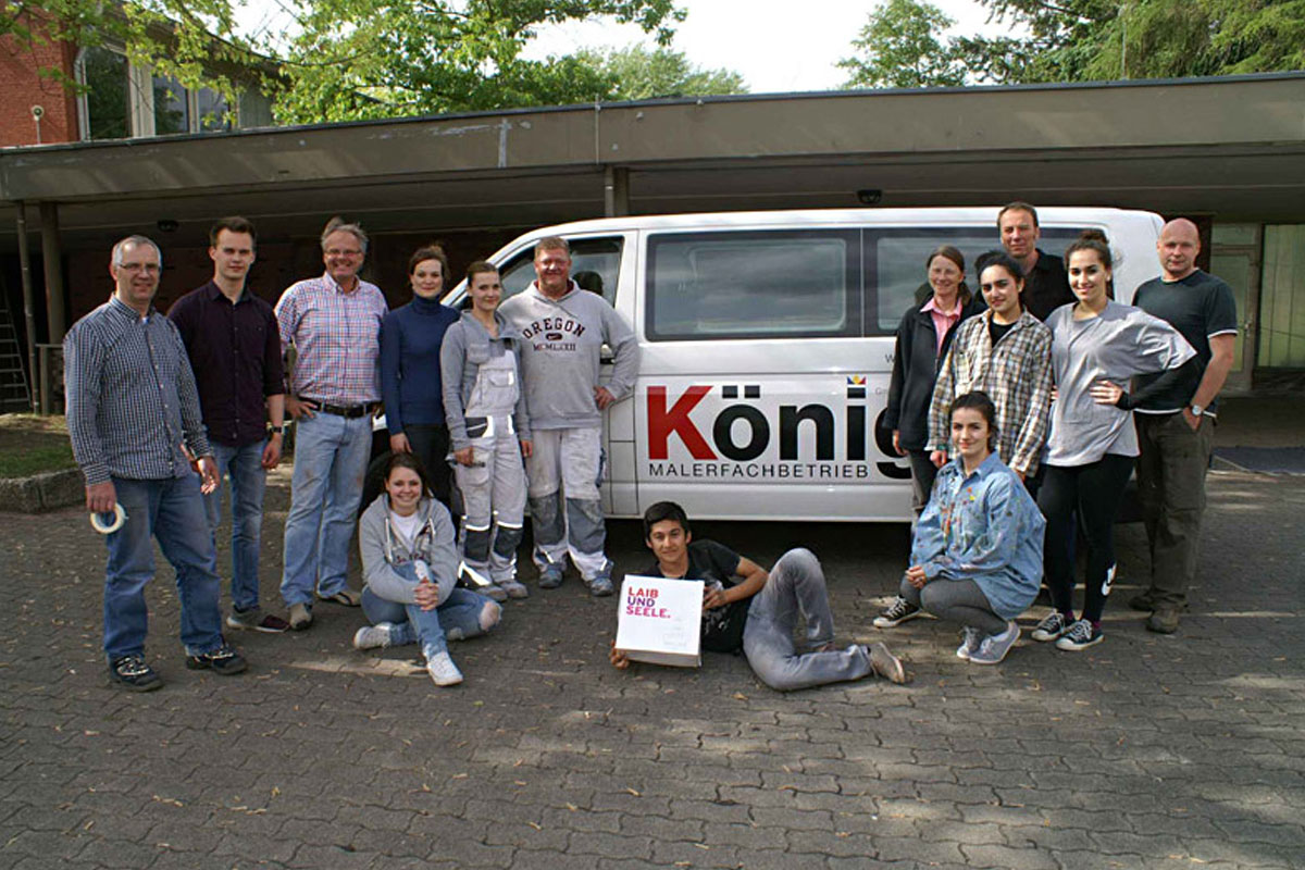 Zum Abiball soll es schön sein: Gymnasiasten streichen Pausenhalle.