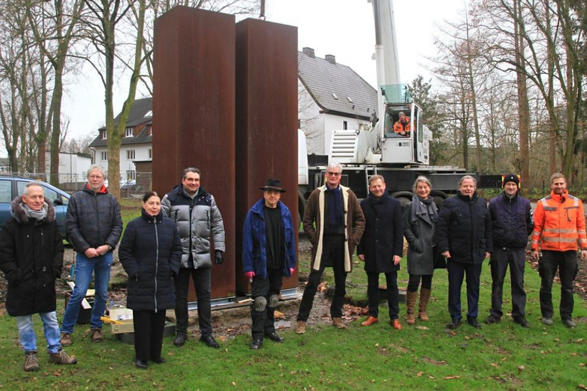 Dr. Frank Röschinger schenkt Ahlen die Skulptur "Twin Towers" von Walter Wittek.