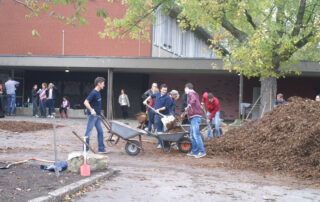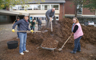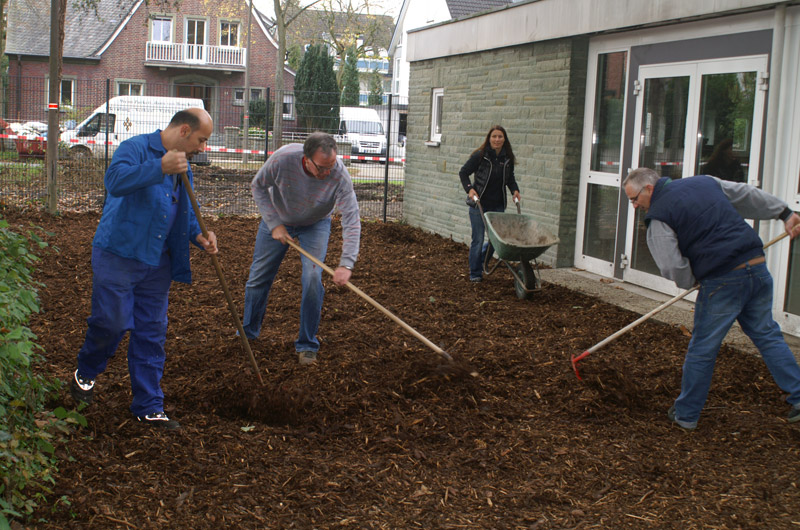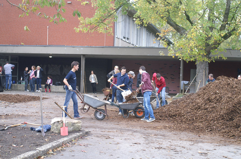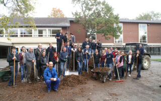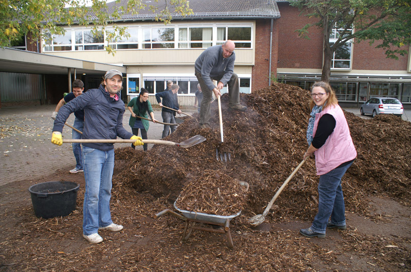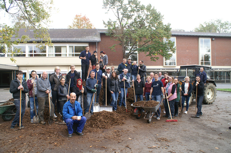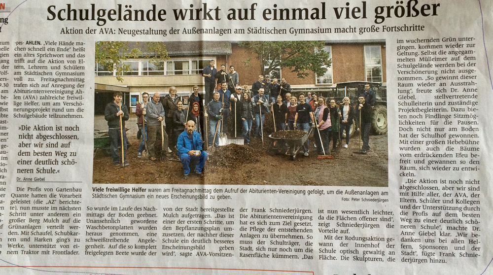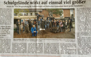 Viele freiwillige Helfer waren dem Aufruf der Abiturienten-Vereinigung gefolgt, um der Außenanlage am Städtischen Gymnasium ein neues Erscheinungsbild zu geben.