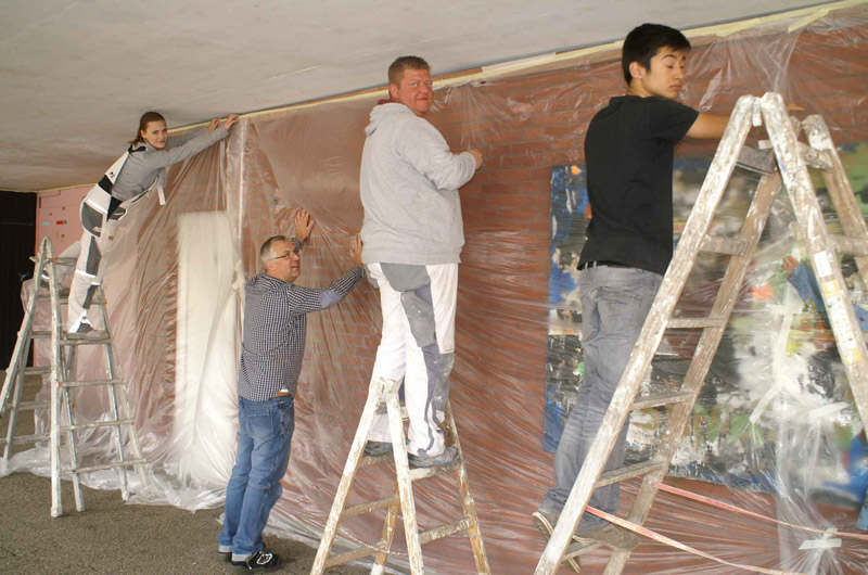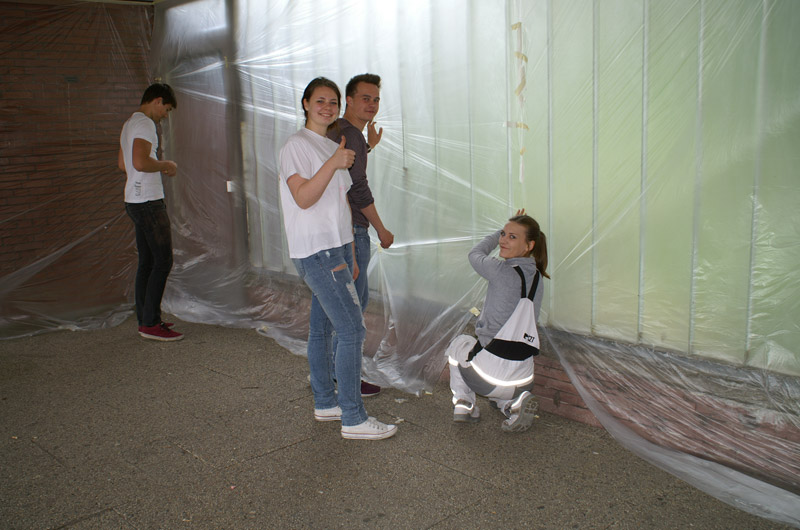 „Es macht einfach Spaß mit soviel Unterstützung, wir müssen uns besonders bei Obi und Brillux bedanken, die uns viel Material gestellt haben“, macht stellvertretende Schulleiterin Dr. Anne Giebel klar. Sie möchte zum Abiturball die Schule schön machen.